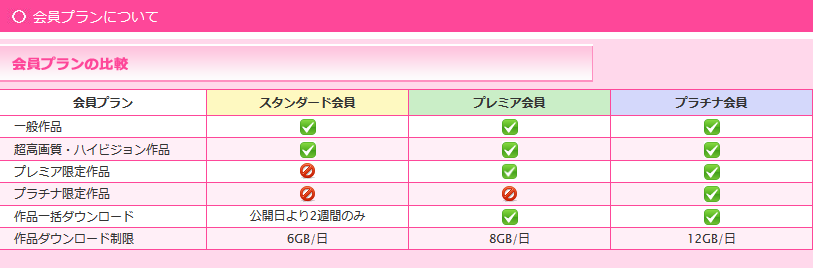 ※注意:プレミア・プラチナ、の作品はそれぞれ残念ながらスタンダード会員では