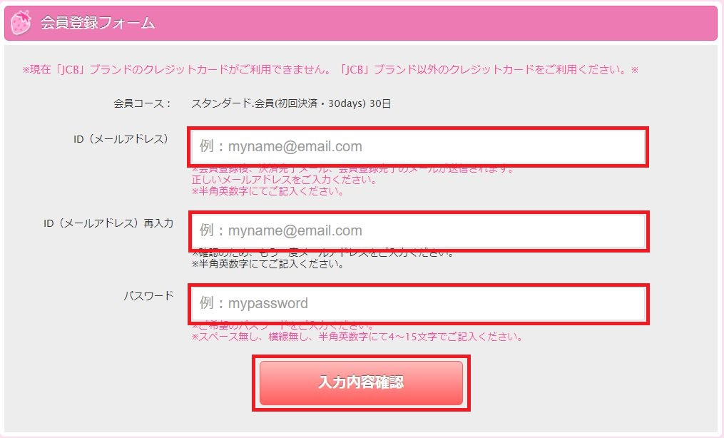 メールアドレス・パスワードを確認し、申込みをクリック
