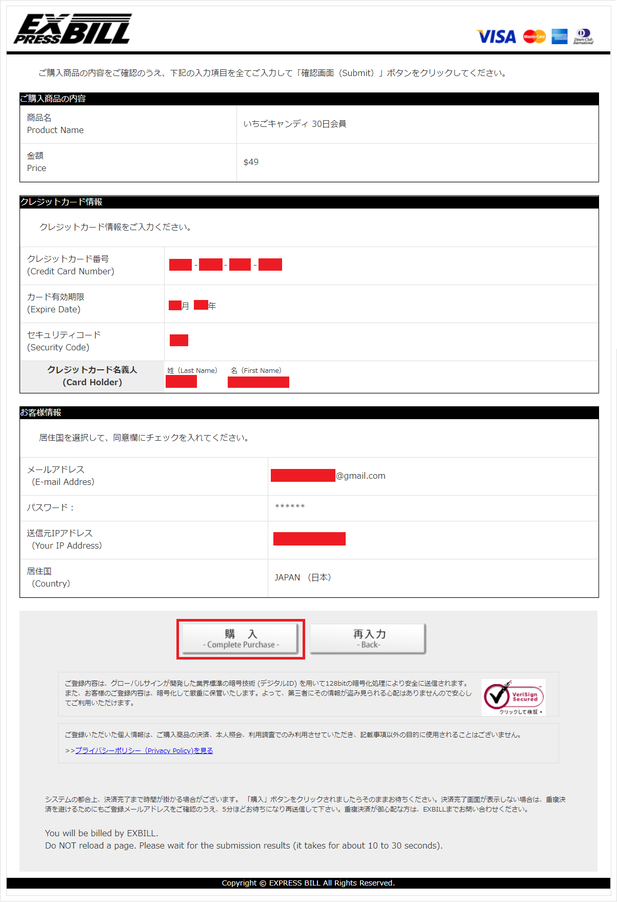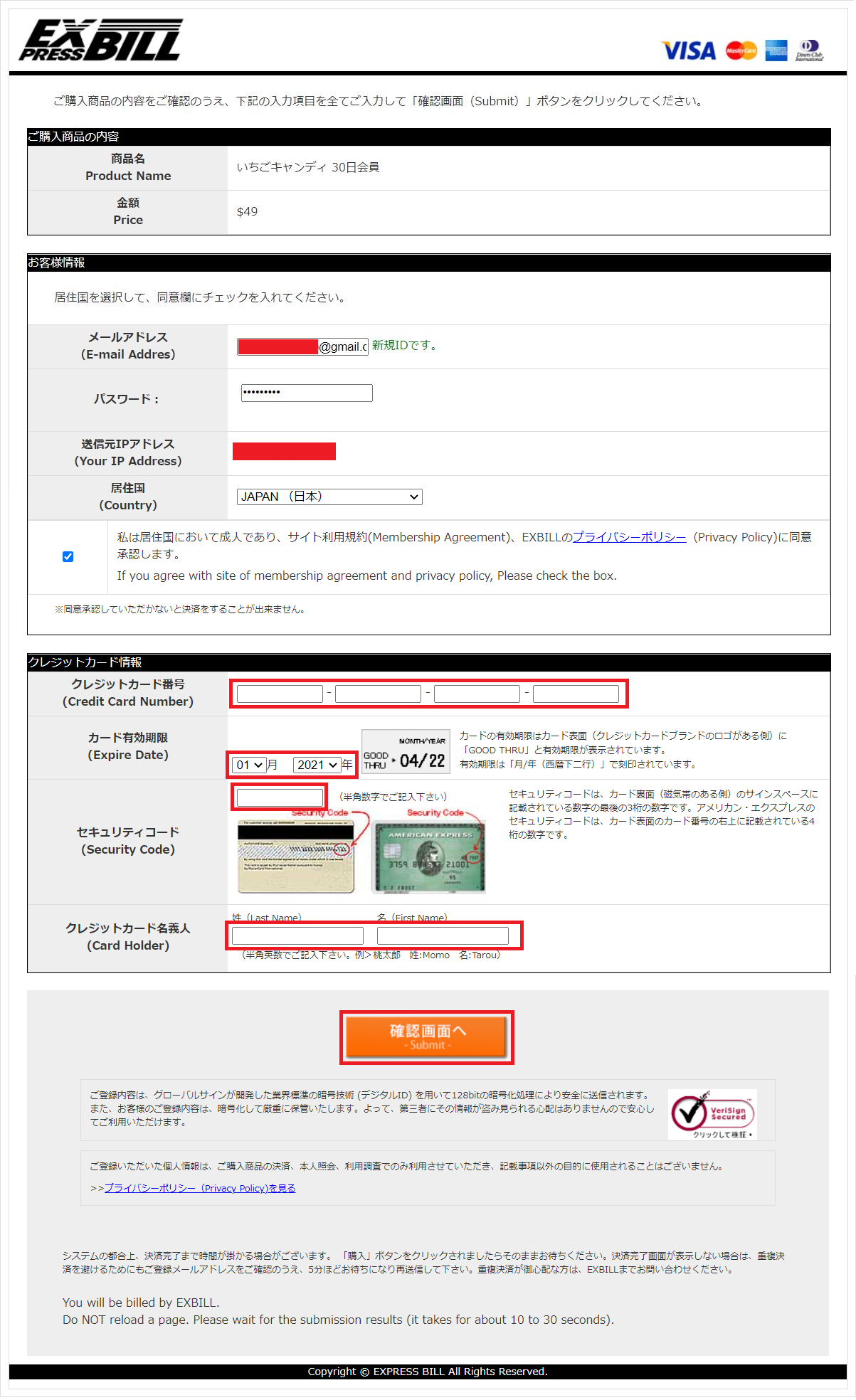 入力した契約情報を確認し入会する